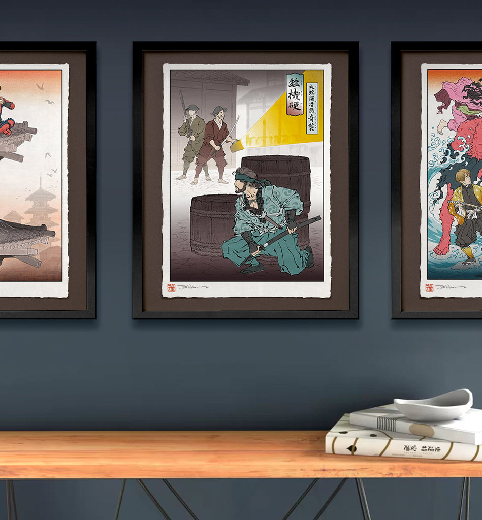 1) Handmade Japanese Paper: Created by the Kikuchi Studio in Ehime Japan, this paper features a lovely mulberry texture and rough deckled edges. The overall effect makes our giclée prints look like real historical Japanese prints. I'm very proud of these!
