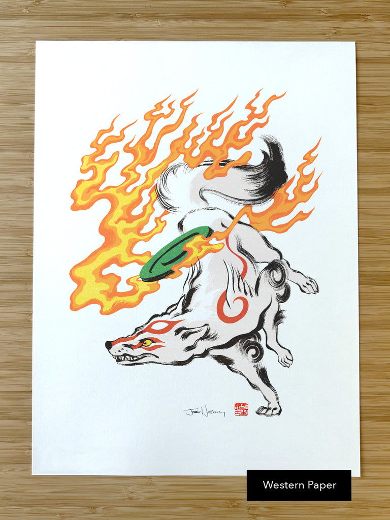 1) Handmade Japanese Paper: Created by the Kikuchi Studio in Ehime Japan, this paper features a lovely mulberry texture and rough deckled edges. The overall effect makes our giclée prints look like real historical Japanese prints. I'm very proud of these!