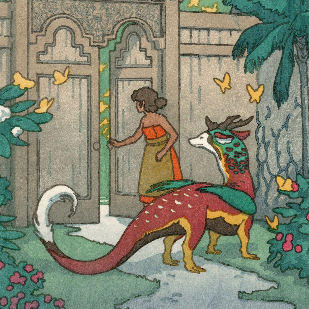 While most of my prints tend to be fan art homages, I also like to explore original themes from time to time. I created two new prints, focusing on the friendship of a girl and her dragon companion in a world inspired by Southeast Asia and the Pacific Islands. While designing the dragon I referenced tropical Asian birds like peacocks and jungle fowl, and the final design is pretty adorable!