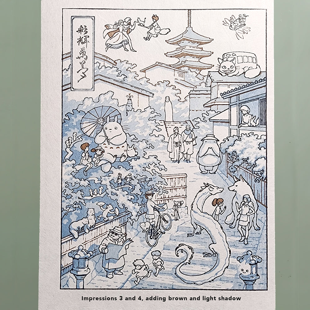 We are also setting a very low price for such a complex print. This is a great opportunity to own a piece of our history, as we slowly train up the next generation of printmakers. We thank you for investing in the future of this craft! In the process of making this print, Calvin learned a ton!
