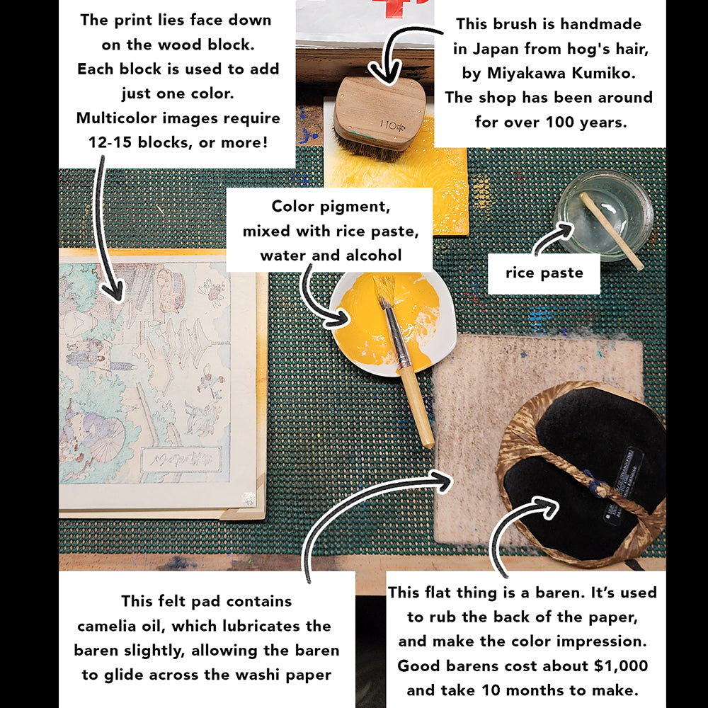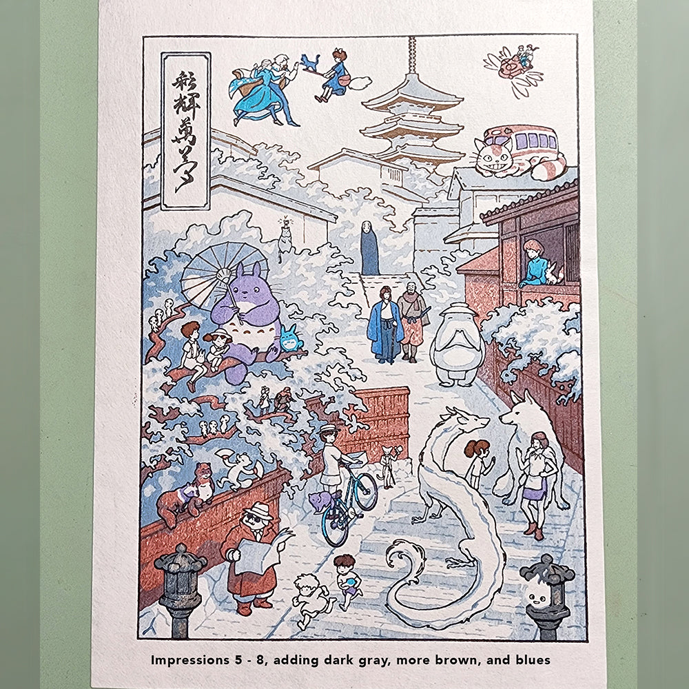This is a handmade woodblock print. Wow! I can't believe how good this looks. We really are making great progress with our apprentice printmakers.